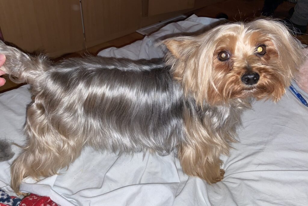 Szőrzete a testen mérsékelten hosszú, tökéletesen egyenes (nem hullámos), fényes, selymes szerkezetű, nem gyapjas. A fejen hosszú, arany tan-színű, mélyebb árnyalatú a fej két oldalán, a gyökerénél és az orron, ahol nagyon hosszú. A fej szőrzetének tan színe semmiképpen nem terjedhet ki a nyakra, a sötét vagy kormos színű szőrzet nem keveredhet a tan-színűvel. Szőre mindennapos gondozást igényel. Színezet: A nyakszirttől a farok végéig sötét acélkék (nem ezüstös kék) szőrzet borítja a testet, melybe nem keveredhet fakó, bronzszínű vagy sötét árnyalat. A mellkason sűrű, fényes tan-színű szőrzet. A tan-színű szőrzet a gyökerénél sötétebb, mint a szőrszál közepén, a vége felé egyre világosabb. Nem hullatja a szőrét. A születésükkor fekete és cser színű bundája hamar acélkék és cser színűvé válhat.