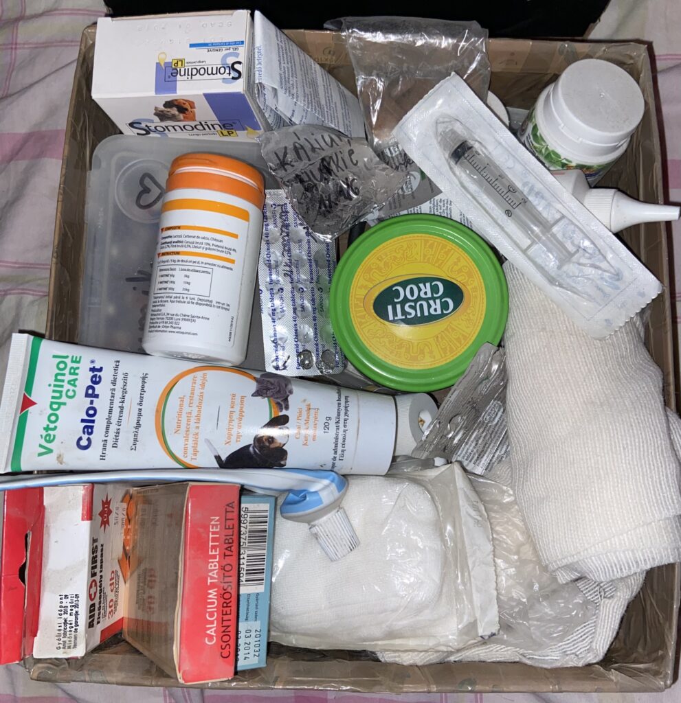 Egy kalciumot is érdemes otthon tartani, hirtelen fellépő allergia ellen és antihisztamint is, az is van, csak nem fotóztam le, azt doki tud felírni, ha kértek és kiváltjátok patikában.