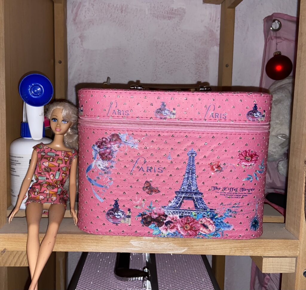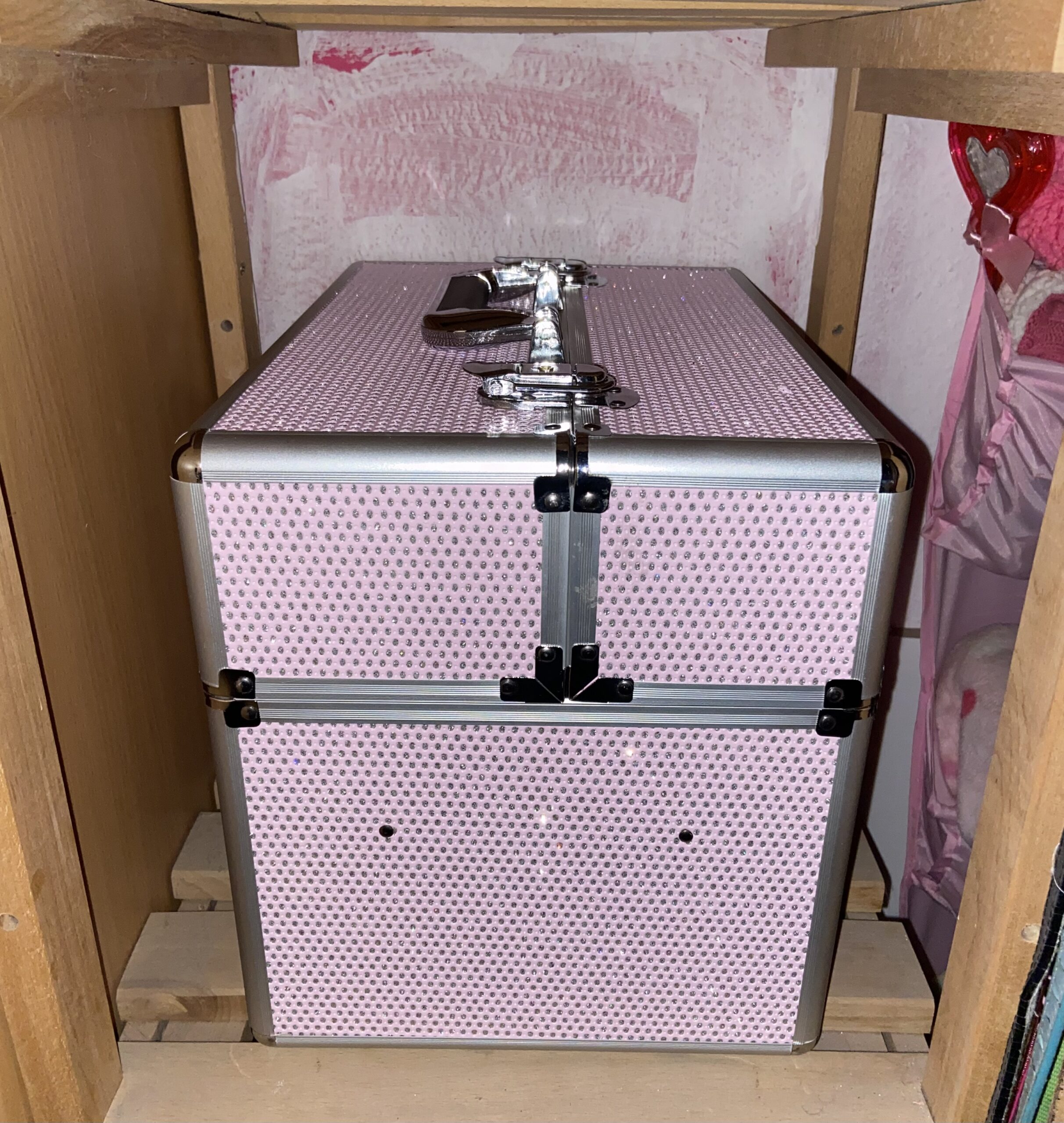 Ahogy látjátok, bepakoltam a dobozba, próbáltam kategorizálni mindent, aztán a helyére raktam. A doboz mögötti mesés falfestés az én munkám, megrendeléseket felveszek. Ja nem. Na, majd egyszer ki lesz javítva. Csináltam egy közeli fotót a dobozról, mert távolról nem látszik elég jól, hogy mennyire gyönyörű és csillogós. És emellett nagyon szép és jó minőségű a burkolata, lemosható, nem olcsó gumi.